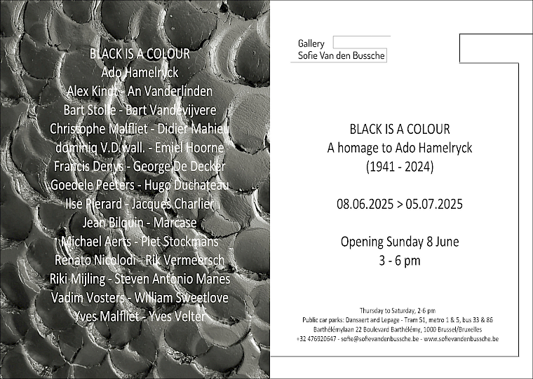08.06.2025 - 05.07.2025 Black is a colour Gallery Sofie Van den Bussche, Barthélémylaan 22, 1000 Brussels (BE) All info 24.04.2025 - 27.04.2025 Art Brussels 2025 Brussels Expo, Hall 5, Belgiëplein 1, 1020 Brussels (BE) All info 30.03.2025 - 31.03.2026 Sketching for the Basilica Museum of Modern Religious Art, National Basilica 3rd floor, Basiliekvoorplein 1, 1083 Brussels (BE) All info 10.11.2024 - 01.12.2024 This is my church Parcours (Ferme du Rond-Chêne & Ferme de Wahenge), Tourinnes-la-Grosse More info 08.11.2024 - 10.11.2024 West Bund Art & Design Shanghai 2024 West Bund Art Center, N° 2555, Longteng Avenue, Xuhui District, Shanghai More info 28.09.2024 - 21.12.2024 Positioning Space Axel Vervoordt Gallery (Escher Gallery), Stokerijstraat 19, 2110 Wijnegem More info 07.09.2024 - 15.11.2024 Tempus et Spatium I Matthew Liu Fine Arts, Suite L205-206A, 99 East Beijing Road, Shanghai More info 23.03.2024 - 18.05.2024 Concealment and Disclosure Axel Vervoordt Hong Kong, Coda Designer Centre, Hong Kong More info